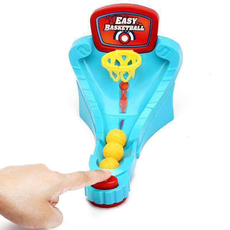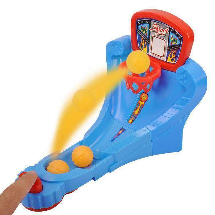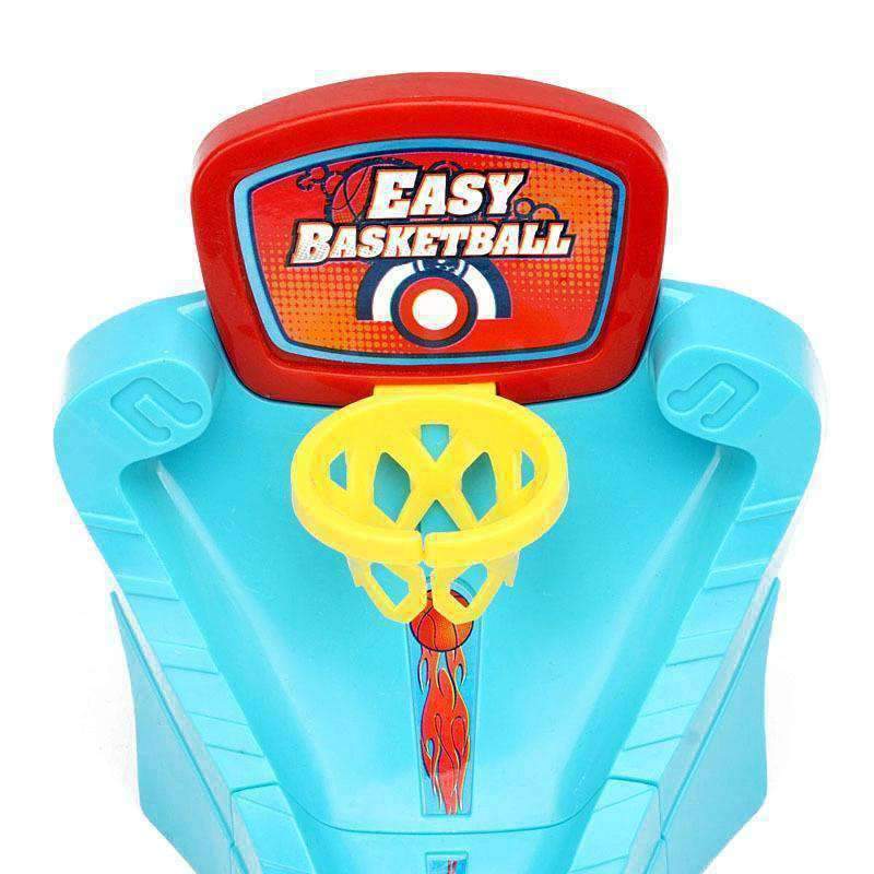 Play by yourself or create a 2-player competition!. Easily assembles and takes apart for easy storage. Basketball Shoot Game for Children 3+ Spring action Mini table top that launches basketballs after pressing the button, make your basketball bounce into the basket.
