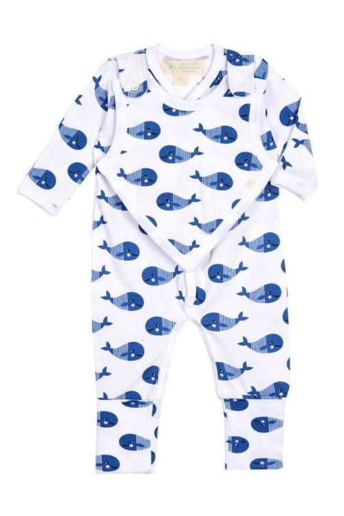 A PJ with an attachable bib. Additional Combinations: 1- attach a bib and pacifier strap at the same time. 2- attach a bib and hat at the same time. Hat and Pacifier Strap in above combination sold separately.